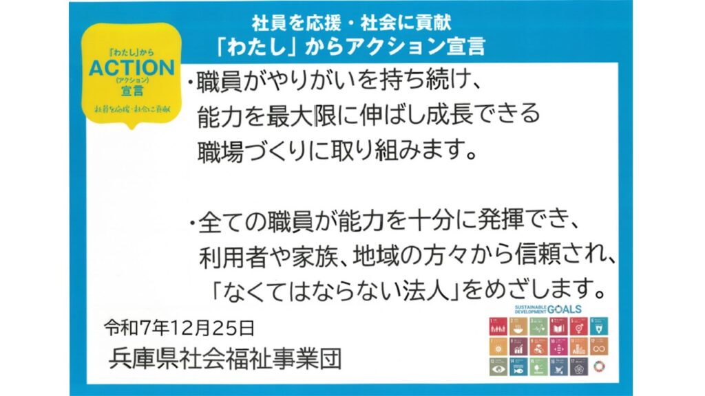 兵庫県が推進する「わたし」からアクション宣言の趣旨に賛同し、このたび宣言を行いました。