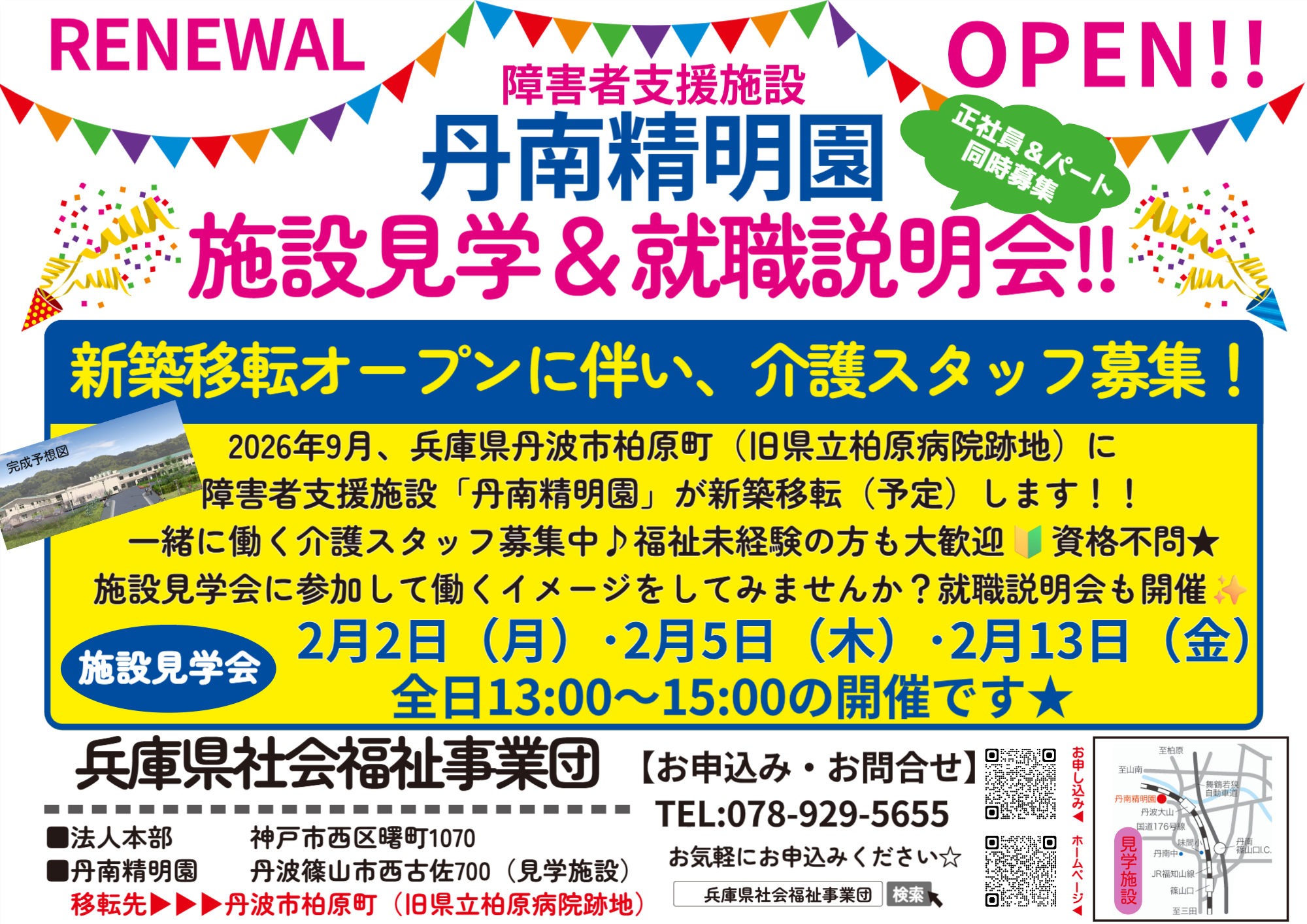 2026年9月、障害者支援施設「丹南精明園」は、兵庫県丹波市柏原町(旧県立柏原病院跡地)に新築移転(予定)します♪